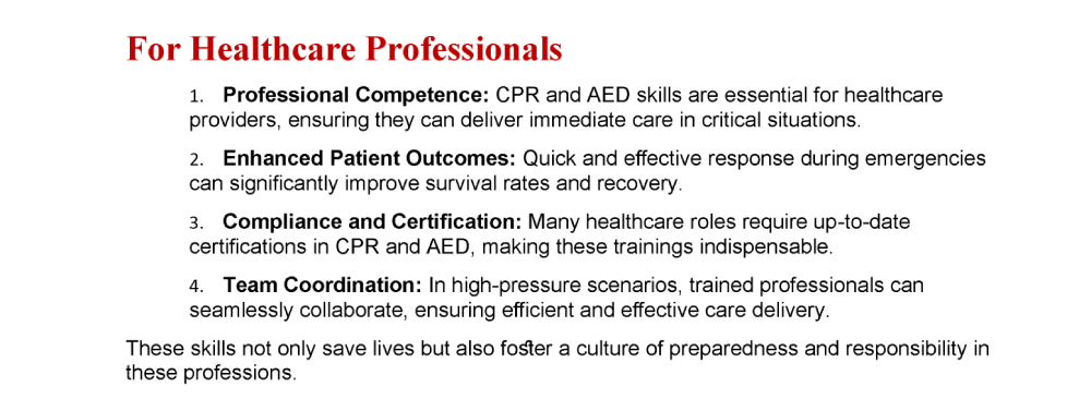Led by certified instructors with real-world nursing and emergency care experience, our training follows nationally recognized guidelines. We cover Adult, Child, and Infant CPR, choking relief, and AED use—teaching both proper technique and how to stay calm when seconds matter.